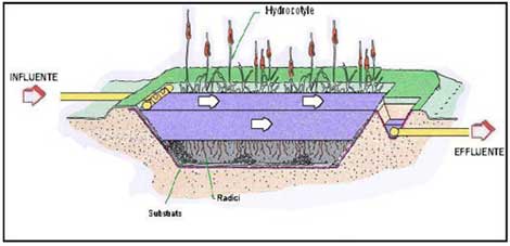 I sistemi a flusso superficiale sono efficienti nella rimozione di sostanze organiche attraverso la degradazione microbica e la deposizione delle particelle colloidali. I solidi sospesi sono effettivamente rimossi per mezzo di sedimentazione e filtrazione attraverso la fitta vegetazione. L’azoto è eliminato principalmente attraverso la nitrificazione (nella colonna d’acqua) e successiva denitrificazione (nello strato della lettiera), e per volatilizzazione dell’ammoniaca che avviene a pH elevati causati dalla fotosintesi delle alghe. La ritenzione del fosforo è di solito bassa a causa del contatto limitato dell’acqua con le particelle di terreno che adsorbono e/o precipitano il fosforo. L’assorbimento da parte delle piante delle sostanze disciolte rappresenta solo un immagazzinamento temporale poiché le sostanze nutritive vengono rilasciate in acqua dopo il decadimento della pianta.