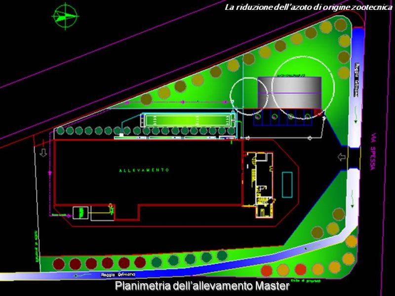 Il refluo prodotto dai suini nell’allevamento Master viene inizialmente inviato ad un sistema di flottazione centrifuga preceduto da un filtro a vagli con la funzione di dividere con il massimo dell’efficienza la parte liquida dalla solida. La frazione liquida viene trattata mediante la fitodepurazione, mentre la parte solida viene inviata ad un micro impianto di biogas per la produzione di energia elettrica, il cui digestato è invece inviato alla fase di compostaggio per la produzione di compost destinato ad aziende del settore orticolo.